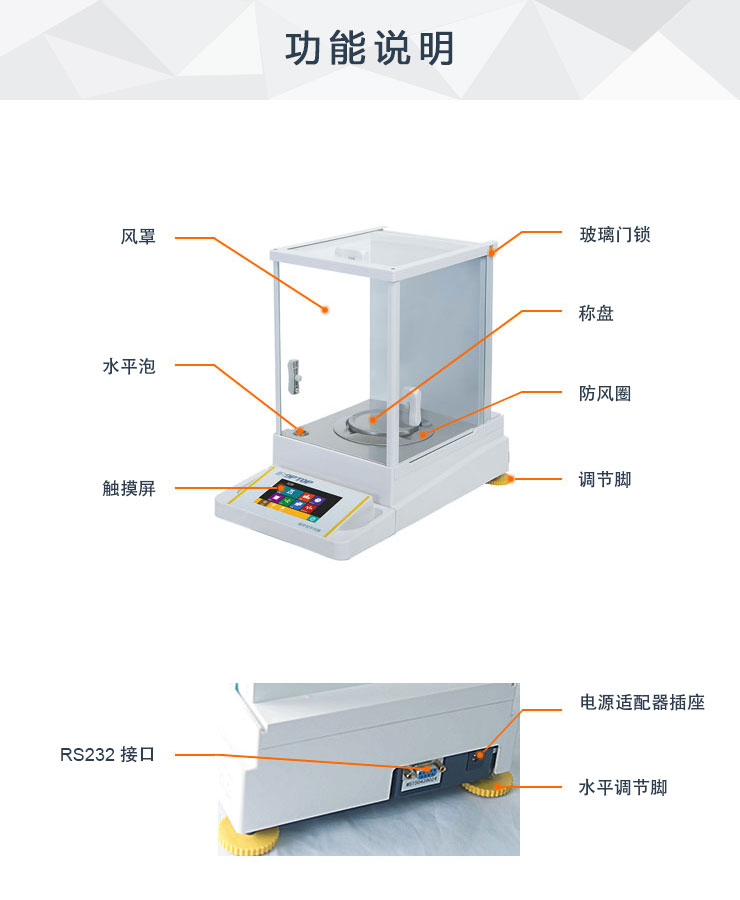 7. 玻璃門運輸保護鎖:有效的提供天平的運輸保護。