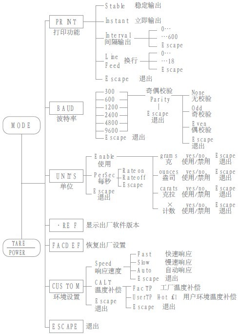 JA型系列電子天平功能菜單